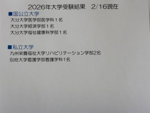 国公立大学に3名!(大分大学3名うち1名は医学部医学科)